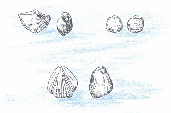 Brachiopod. One of a large group of marine shelled animals having two unequal, bilaterally symmetrical shells.