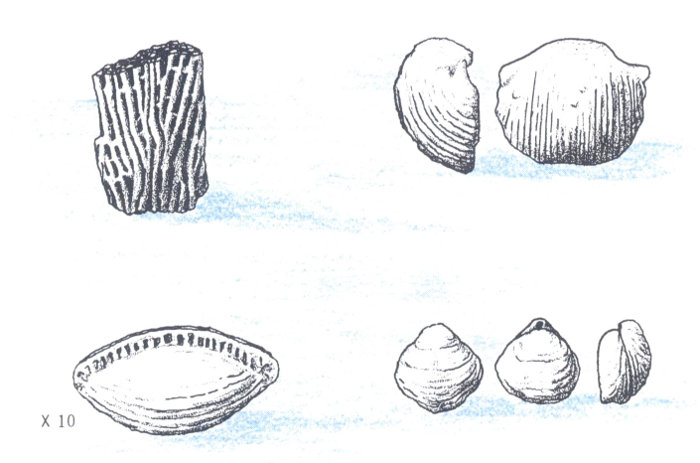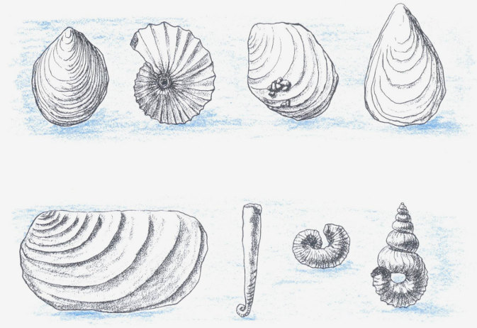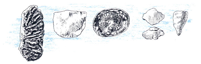 Fusulinid. One-celled marine animals (forams) with shells which look like a grain of wheat in shape and size, frequently abundant in Colorado Pennsylvanian rocks.