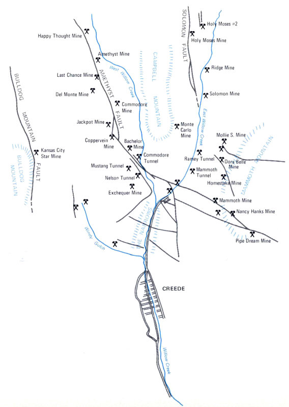 Lovering, T. S., and Goddard, E. N., 1950, GEOLOGY AND ORE DEPOSITS OF THE FRONT RANGE, COLORADO. U. S. Geological Survey Professional Paper 223. A comprehensive study of mineral-bearing areas in the Front Range.