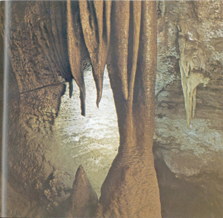 Stalagmite. Columns or ridges of calcite rising from the floor of a cavern, formed by water containing calcium carbonate dripping from a stalactite.
