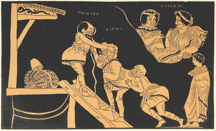 [57] Democedes was a physician of Crotona, whose services were engaged by the cities of Ægina and Athens and by Polycrates, Tyrant of Samos, in succession, at increasing salaries (£344, £406, £487 10s.). He was taken prisoner in company with Polycrates and sent up to Susa. Here he remained for a time unnoticed among the king’s slaves. Darius chanced to sprain his ankle, in leaping from his horse, and the Egyptian physicians who were called in failed to effect a cure. Some courtier had chanced to hear that Polycrates had had a famous physician in attendance on him, and suggested that his advice should be asked. He was brought as he was, “clothed in rags and clanking his chains,” into the king’s presence. It was only under threat of torture that he confessed his knowledge of medicine. But he treated the injury with success, and was amply rewarded, the king giving him two pairs of golden chains, and each of the royal wives dipping a saucer into a chest of gold coins and pouring the contents into his hands so bountifully that the slave who followed him was enriched by the stray pieces. He afterwards healed Atossa, Darius’s principal queen, of a dangerous carbuncle. By a stratagem which I have not space here to describe he got back to his native city, where he married the daughter of the great athlete Milo, and finally settled.