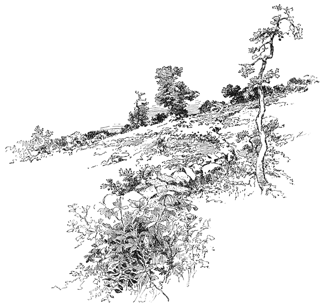 Jaren later kwam ik door de oude wei en ging regelrecht naar de wildernis van doornstruiken. Er waren prenten van een patrijs in de sneeuw,—korte sporen, die licht rustten op het zachte blank, en toonden dat de Natuur gedachtig was aan zijn behoeften en gezorgd [106]had dat zijn nieuwe sneeuwschoenen prachtig gegroeid waren. Ik haastte me naar de beek, terwijl tallooze herinneringen aan gelukkige dagen en zeldzame ontdekkingen, als het boschvolkje me zijn kleine geheimen openbaarde, zich aan me opdrongen. Toen ’k er heelemaal in verdiept was—kwit-kwit! en met luidruchtig wiekgeruisch suisde er een patrijs weg, wild en grijs als de bijzondere vogel, die daar jaren te voren geleefd had. En toen ik er een jager naar vroeg, zei hij: „Die oude beukenpatrijs? O ja, die zit daar. Daar zal hij wel blijven ook, tot hij van ouderdom doodgaat, want, ziet u, mijnheer, d’r is hier in de buurt niemand gewikst genoeg om hem te vangen.” [107]