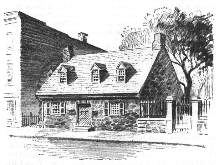 On your left is the oldest house in Richmond, erected about 1686. On the front wall may be seen the letters “J.R.,” supposed to signify “Jacobus Rex,” James II, who was then King of England. The building is now a part of the Edgar Allan Poe Foundation, which includes also the small buildings on the left and right, in the three of which are housed much Poe material and many articles relating to his residence in Richmond. In the rear is an “enchanted garden” which leads to a classical loggia, built chiefly of material from the former Southern Literary Messenger building. ¶ Turn right on Twentieth to Cary.