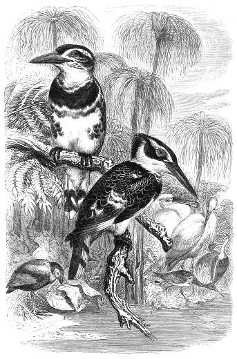 THE ALCYONS (Halcyones). The TREE ALCYONS (Halcyones):—The Red-breasted Tree Alcyon. The WOOD ALCYON (Todiramphus):—The Yellow-headed Wood Alcyon—The Blue Alcyon. The GIANT ALCYONS (Paralcyon, or Dacelo):—The Laughing Jackass, or Settler's Clock. The PARADISE ALCYONS (Tanysiptera):—The True Paradise Alcyon. The SAW-BEAKED ALCYONS (Syma):—The Poditti. The SLUGGARDS (Agornithes). The JACAMARS (Galbulæ):—The True Jacamars—The Green Jacamar 91-96