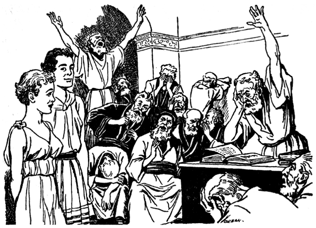 These last sentences were shouted to be heard above the roar of the crowd. Yet when Rocsates stopped, so also did the noise, so shocked and amazed at his words were they. And I confess, myself also.