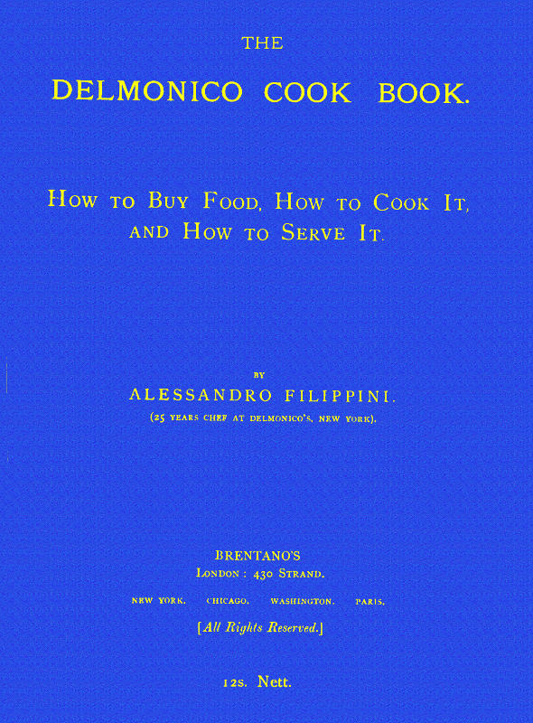 The Table: How to Buy Food, How to Cook It, and How to Serve It.—By Alessandro Filippini. 8vo. Oil-cloth, full seal russia. For twenty-four years Mr. Filippini was Delmonico’s chef, and this work is endorsed by the Delmonicos.