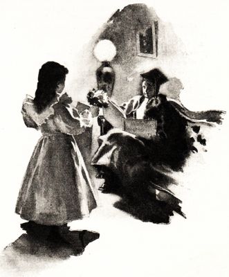 It was I who called him the Little Bishop. His name was Phillips Brooks Sanderson, but one seldom heard it at full length, since "Phil" was quite enough for an urchin just in his first trousers, and those assumed somewhat prematurely. He was "Phil," therefore, to the village, but always the dear lovable Little Bishop to me. His home was in Bonnie Eagle; it was only because of his mother's illness that he was spending the summer with his uncle and aunt in Pleasant River. I could see the little brown house from my window. The white road, with strips of tufted green between the wheel tracks, curled dustily up to the very door-step, and inside the wire screen-door was a wonderful drawn-in rug, shaped like half a pie, with "Welcome" in saffron letters on its gray surface. I liked the Bishop's aunt; I liked to see her shake the "Welcome" rug before breakfast, flinging the cheery word out into the summer sunshine like a bright greeting to the new day; I liked to see her go to the screen-door a dozen times a day; open it a crack, and chase an imaginary fly from the sacred precincts within; I liked to see her come[Pg 234] up the cellar steps into the side garden, appearing mysteriously as from the bowels of the earth, carrying a shining pan of milk in both hands, and disappearing through the beds of hollyhocks and sunflowers to the pig-pen or the hen-house.
