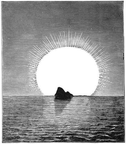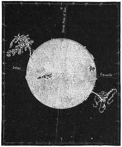 The brightness of the sun is among the most wonderful things in nature, and there are three points that I ask you to remember, and then indeed you will agree with Milton, that the sun is “with surpassing glory crowned.” First think of the beauty and brilliancy of a lovely day in June. Then remember that all this flood of light comes from a single lamp at a most tremendous distance; and thirdly, recollect that the sun is not like a bull’s-eye lantern, concentrating all his light specially for our benefit, but that he diffuses it equally around, and that we do not get on this earth the two-thousand-millionth part of what he gives out so plenteously! When we think of the brightness of day, of the distance from which the light has come, though Nature has not adjusted any vast lenses to direct10 the light specially in our direction, we begin to comprehend the sun’s true magnificence.