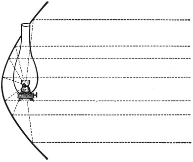 Some ingenious person has turned this principle to an odd use, by arranging a burning-glass over a cannon in such a way that just when noon arrived the spot of light should reach the touch-hole of the cannon and fire it off. Thus the sun itself is made to announce the middle of the day (Fig. 2).