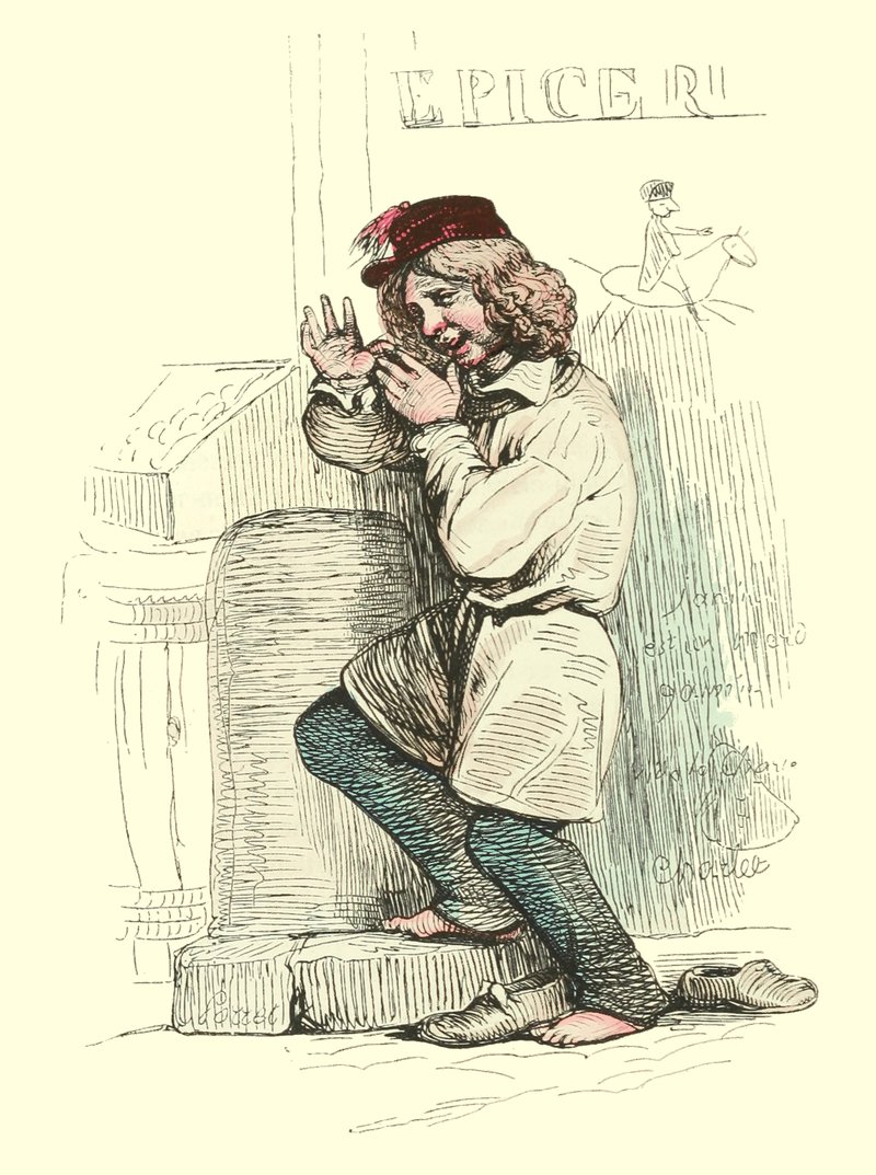 Voulez-vous un Spartacus, un César, un Cicéron, un saint Étienne, un Clovis, un Molière, etc.? Souhaitez-vous faire revivre sur la toile une notabilité quelconque de l’antiquité ou des temps modernes? Vous faut-il un baron féodal ou un serf, un Européen ou un sauvage, un martyr ou un Jupiter Olympien, un discobole ou un soldat de la république française? Allez vous-en dans une de ces rues sales et tortueuses dont fourmille notre belle capitale; montez un escalier qui tient le milieu entre une échelle et un mât de cocagne, et là, au fond de quelque grenier, vous trouverez la notabilité demandée, le saint, l’empereur, le roi, le poëte, le guerrier, ad libitum, dans la personne du modèle.
