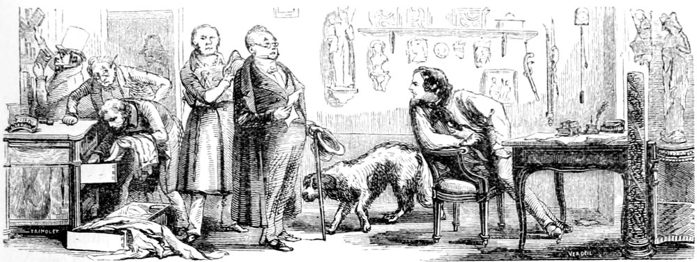 La plus célèbre académie est celle de Suisse, située sur le quai des Orfèvres, au bout du pont Saint-Michel. Ex-modèle retiré du service, Suisse est aujourd’hui peintre en miniature et professeur de dessin. Son humeur joviale égaie ses élèves; quand il remarque parmi eux un grand nombre de nouveaux, il affuble son menton imberbe d’une barbe blanche postiche, frappe humblement à sa porte, et en entrant dit d’une voix cassée: «Pardon, messieurs, auriez-vous besoin d’un modèle à barbe?»