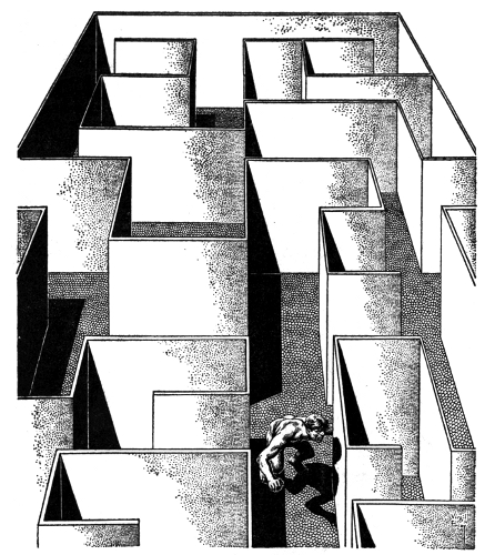 I have been promoted. Apparently He in His infinite alien wisdom has decided that I'm intelligent enough to handle the Skinner-type apparatus, so I've been promoted to solving a maze. Can you picture the irony of the situation? All of the classic Learning Theory methodology is practically being thrown in my face. If only I could communicate with Him! I don't mind being subjected to tests nearly as much as I mind being underestimated. Why, I can solve puzzles hundreds of times more complex than what He's throwing at me. But how can I tell Him?