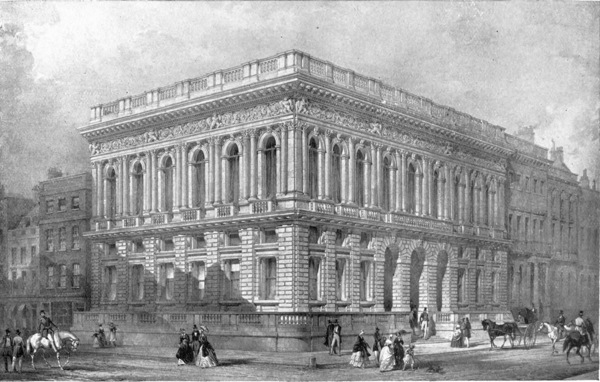 The club-house had been a family hotel. It was comfortable enough when it was first transformed into the home of the Garrick Club, but in course of time the building was found insufficient for the increased number of members, and in 1864 the club removed to a new house built for them a little farther west than the old one, in the then newly-made Garrick Street—a classic region associated with the old club-house.