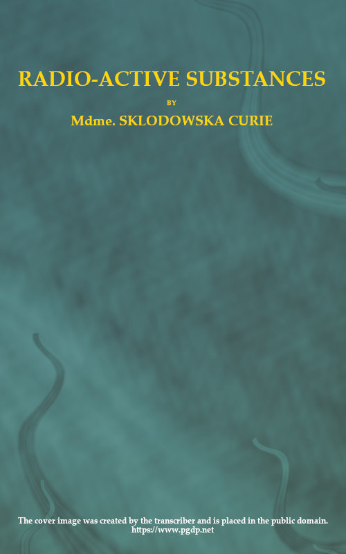 If, from the chemical point of view, the question that we undertook primarily may be looked upon as solved, the study of the physical properties of the radio-active bodies is in full evolution. Certain important points have been established, but a large number of the conclusions are still of a provisional character. This is not surprising when we consider the complexity of the phenomena due to radio-activity, and the differences existing between the various radio-active substances. The researches of physicists on these substances constantly meet and overlap. Whilst endeavouring to keep strictly to the limits of this work and to publish my individual research only, I have been obliged at the same time to mention results of other researches, the knowledge of which is indispensable.