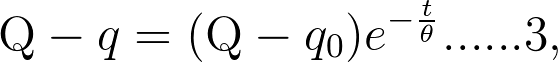 According to Formula 3, the excess of the quantity of emanation, Q, contained by the radium in a state of equilibrium above the quantity, q, contained at a given moment, decreases as a function of the time according to an exponential law, which is also the law of the spontaneous disappearance of the emanation. The radiation of radium being proportional to the amount of emanation, the excess of the intensity of the limiting radiation above the actual intensity should decrease as a function of the time by the same law; the excess should thus diminish to one-half in about four days.