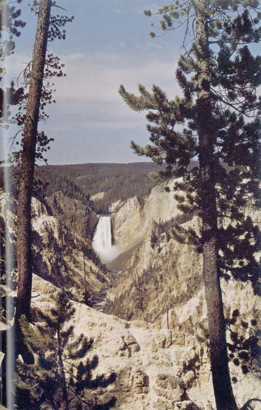 Except for Old Faithful, the Grand Canyon of the Yellowstone is probably the best known and most talked about and photographed feature in the Park (fig. 41). Although not so deep or wide as some of the other great canyons in America, its sheer ruggedness and beauty are breathtaking. Here the aptness of the name “Yellowstone” can be fully appreciated and understood, for the viewer is at once engulfed in a sea of yellow hues streaked and tinted with various shades of red and brown.