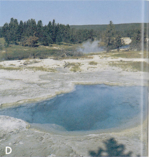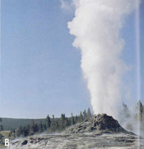B, Castle Geyser erupting in Upper Geyser Basin.