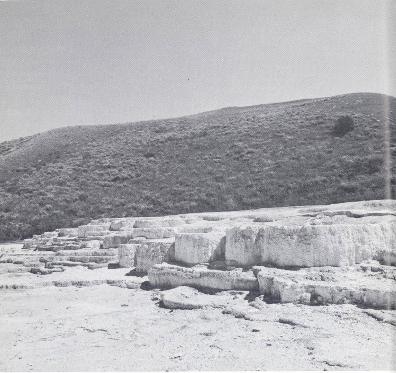 TERRACES OF TRAVERTINE at Opal Springs, Mammoth Hot Springs area. (Fig. 48)
