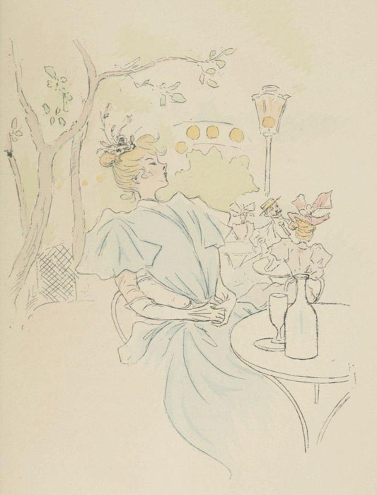 —Alors, apprenez donc que je vais me marier... Je l’aime, il m’aime. Il est riche, moi aussi. J’ai assez promené mes gants noirs dans toutes les Amériques. Je me reposerai du café-concert dans la vie conjugale: je ne chanterai plus que de loin en loin pour des œuvres... C’est fini, mon ami, de la divette que vous avez devinée un soir... vous le 132 rappelez-vous?... dans l’inconnue qui chantait à la requête de Jehan Sarrazin, le poète aux olives, en ce bouibouis qu’était le Divan Japonais...