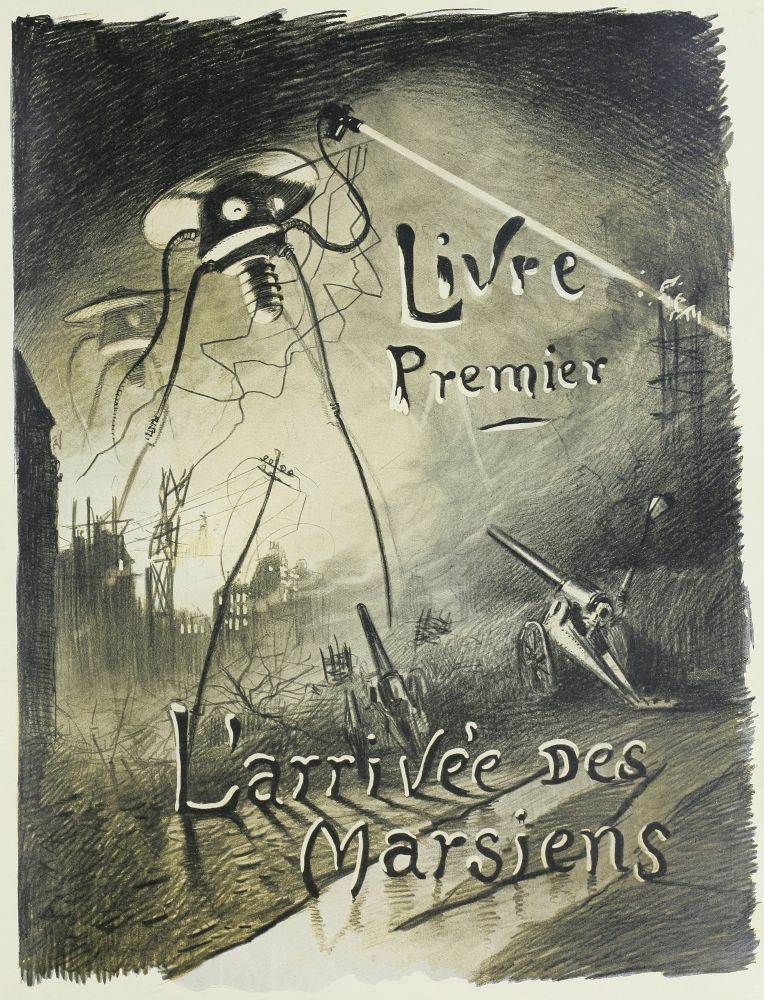Enfin, les journaux quotidiens s’éveillèrent à ces perturbations et des chroniques de vulgarisation parurent ici, là et partout, concernant les volcans de la planète Mars. Le périodique sério-comique “Punch” fit, je me rappelle, un heureux usage de la chose dans une caricature politique. Entièrement insoupçonnés, ces projectiles que les Marsiens nous envoyaient arrivaient vers la terre à une vitesse de nombreux kilomètres à la seconde, à travers le gouffre vide de l’espace, heure par heure et jour par jour, de plus en plus proches. Il me semble maintenant presque incroyablement surprenant qu’avec ce prompt destin suspendu sur eux, les hommes aient pu s’absorber dans leurs mesquins intérêts comme ils le firent. Je me souviens avec quelle ardeur le triomphant Markham s’occupa d’obtenir une nouvelle photographie de la planète pour le journal illustré qu’il dirigeait à cette époque. La plupart des gens, en ces derniers temps, s’imaginent difficilement l’abondance et l’esprit entreprenant de nos journaux du dix-neuvième siècle. Pour ma part, j’étais fort préoccupé d’apprendre à monter à bicyclette, et absorbé aussi par une série d’articles discutant les probables développements des idées morales à mesure que la civilisation progressera.