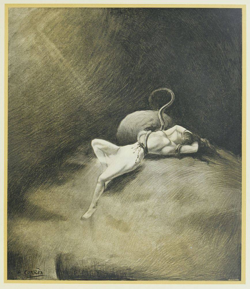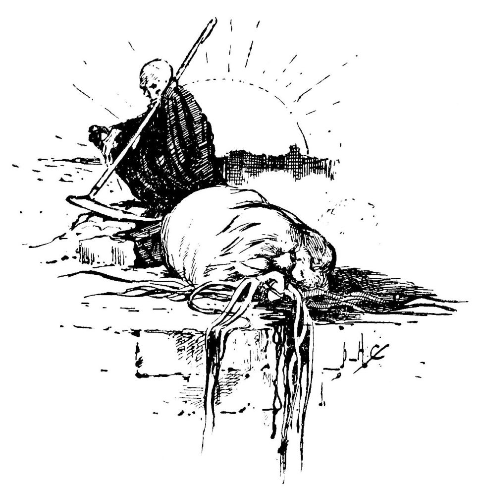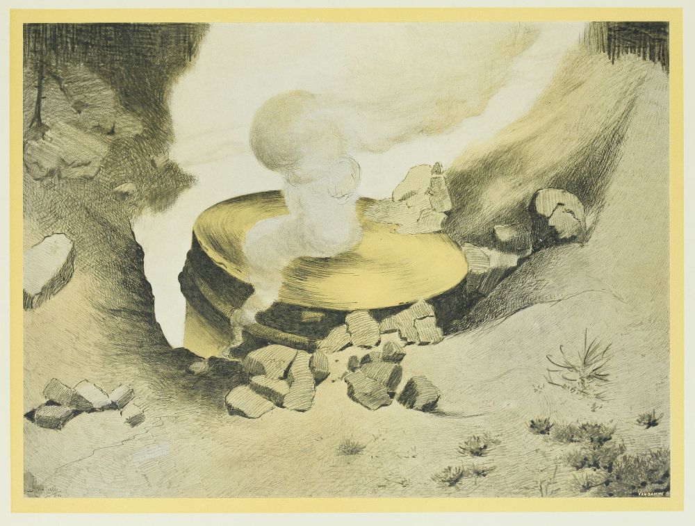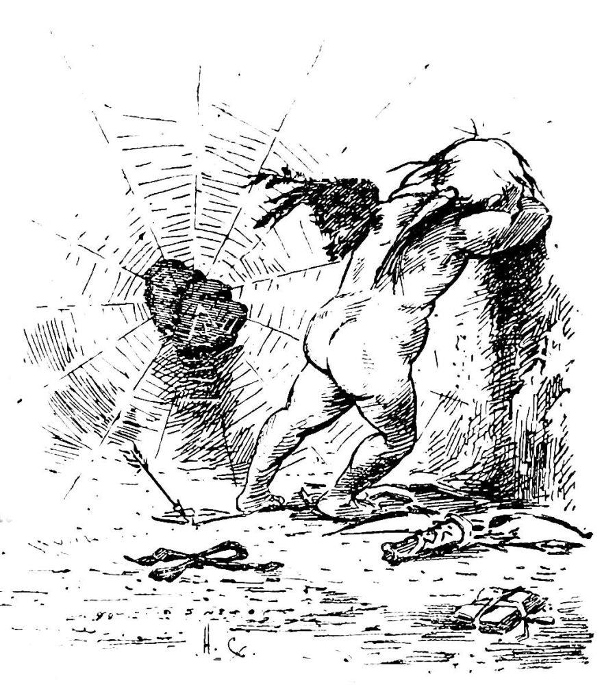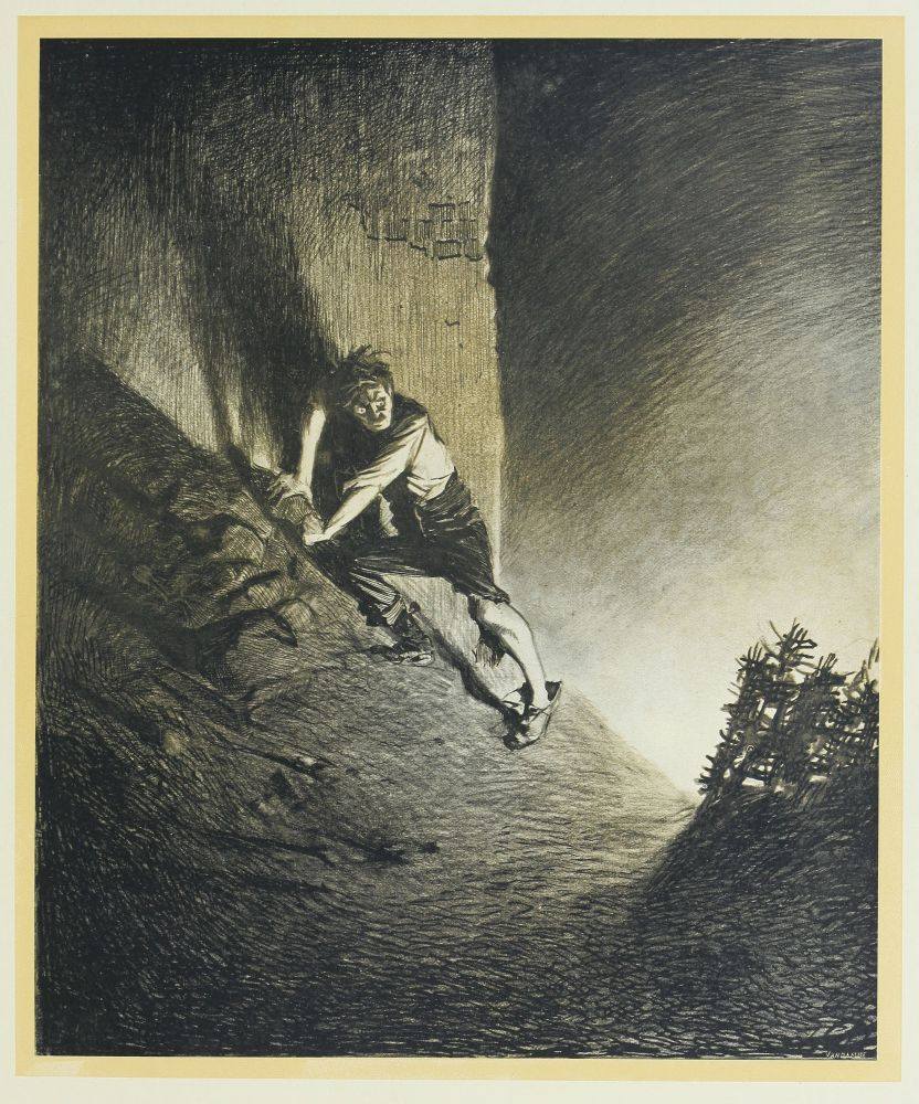 Une volonté insensée me poussait. Je voulais en finir, dussé-je y rester, et je voulais même m’épargner la peine de me tuer de ma propre main. Je m’avançai insouciant vers le titan; comme j’approchais et que l’aube devenait plus claire, je vis une multitude de corbeaux qui s’attroupaient et volaient en cercles autour du capuchon de la machine. A cette vue, mon cœur bondit et je me mis à courir.