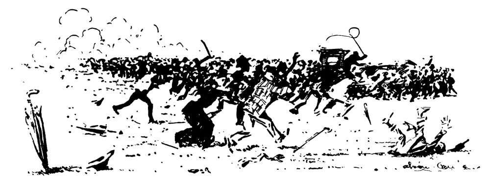 J’étais très content de lui rendre le service qu’il me demandait et de devenir ainsi un des spectateurs privilégiés en deça de la clôture. Je ne rencontrai pas lord Hilton chez lui, mais j’appris qu’on l’attendait par le train de six heures; comme il était alors cinq heures un quart, je rentrai chez moi prendre le thé et me rendis ensuite à la gare.