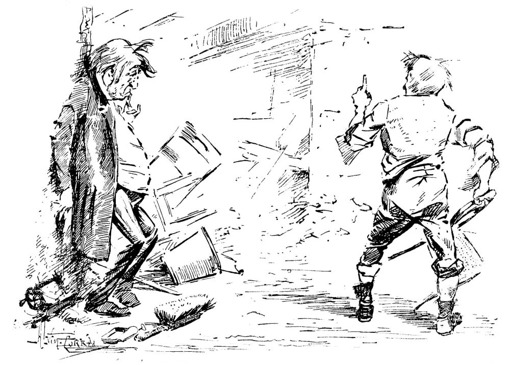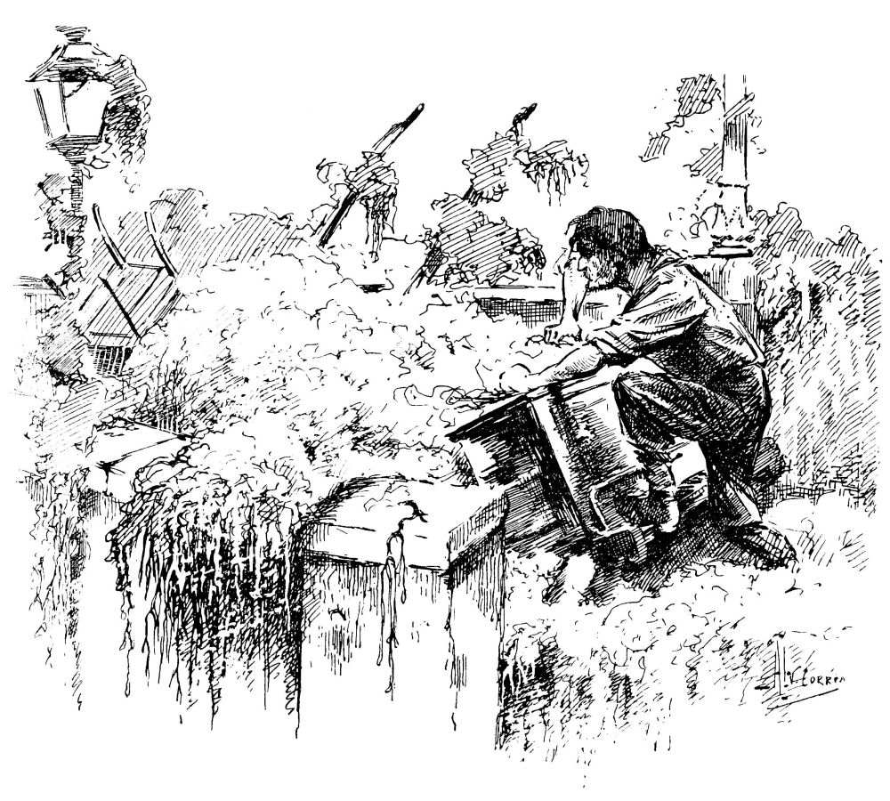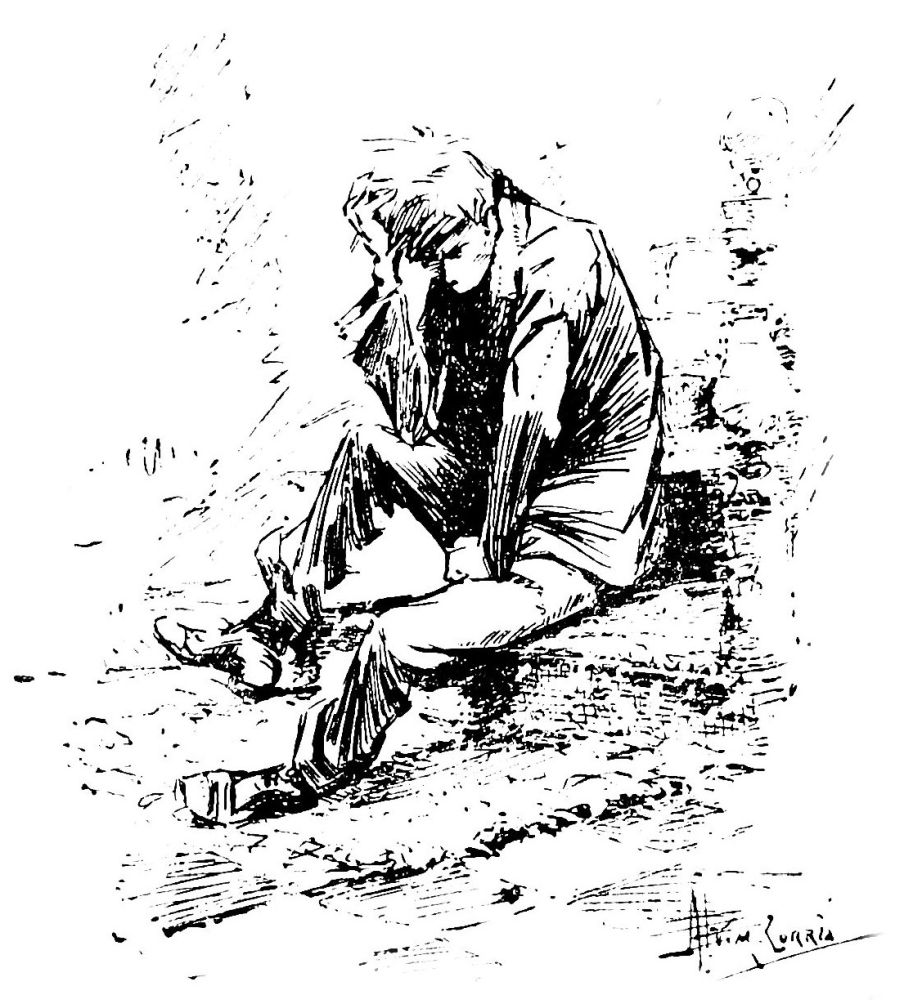 Je me trouvais sans famille et sans foyer, et ils furent très bons pour moi. J’étais seul et triste et ils me supportèrent avec indulgence. Je passai avec eux les quatre jours qui suivirent ma guérison. Pendant tout ce temps, je sentis un désir inexplicable et de plus en plus vif de revoir, une fois encore, ce qui restait de ma petite existence passée, qui avait paru si brillante et si heureuse. C’était un désir sans espoir, un besoin de me repaître de ma misère. Ils firent tout ce qu’ils purent pour me dissuader et me distraire de cette pensée morbide. Mais bientôt je ne pus résister plus longtemps à cette impulsion; leur promettant de revenir fidèlement, et, je l’avoue, me séparant de ces amis de quatre jours avec des larmes dans les yeux, je m’aventurai derechef par les rues qui récemment avaient été si sombres, si insolites, si vides.