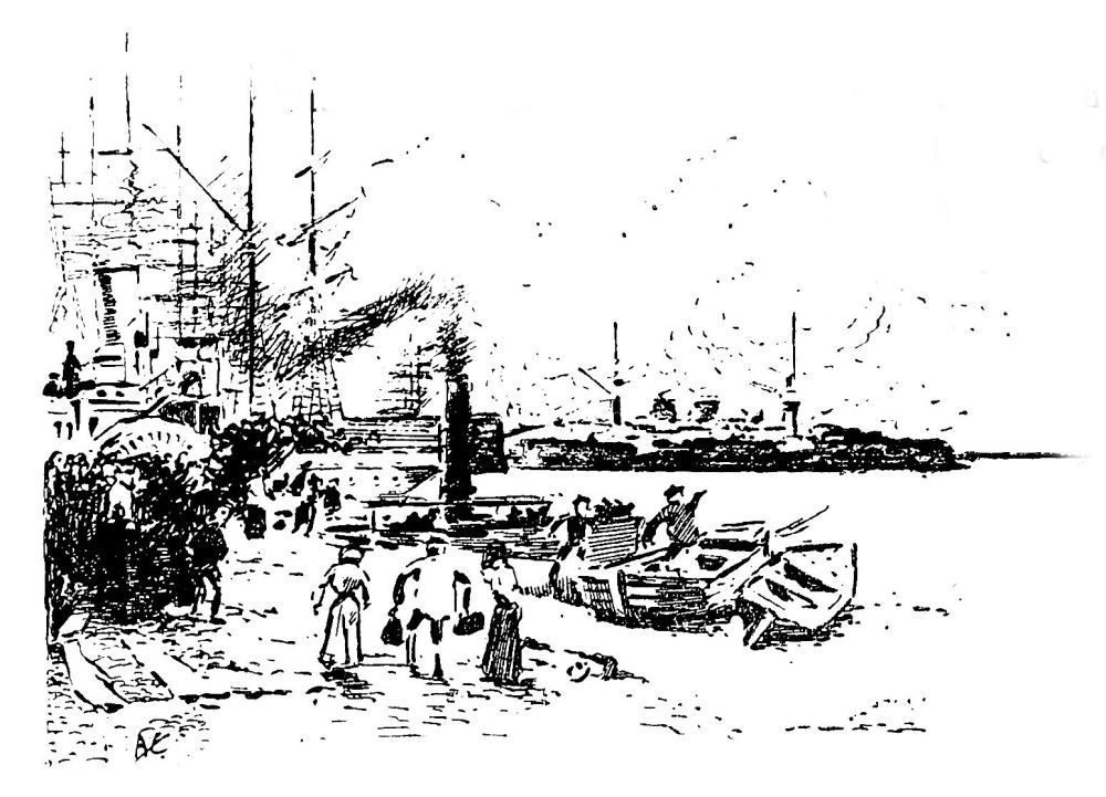 Je continuai ma route. Il y avait bien là, j’imagine, deux ou trois cents personnes se pressant et se coudoyant, les quelques femmes n’étant en aucune façon les moins actives.