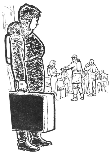 "Okay, girls. Carry your suitcases and I'll give each of you an oxygen mask as you go out. The air's been breathable for fifteen years, but it's still thin to newcomers. If you feel dizzy, take a whiff of oxygen."