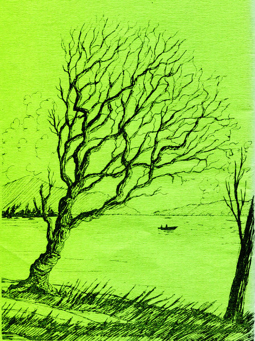 This maple tree was blown down by high winds last summer. Heavy storms come quickly here, and trees and plants living near the shore must be especially hardy to withstand the effects of wind, water and ice. The erosive actions of these forces cause the shore to be battered and worn like a seacoast.