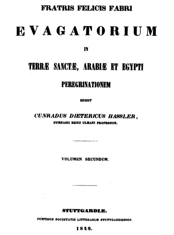 Title: Fratris Felicis Fabri Evagatorium in Terrae Sanctae, Arabiae et Egypti peregrinationem. Volumen Secundum