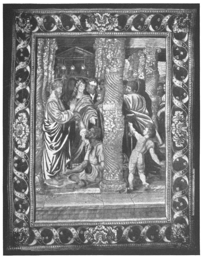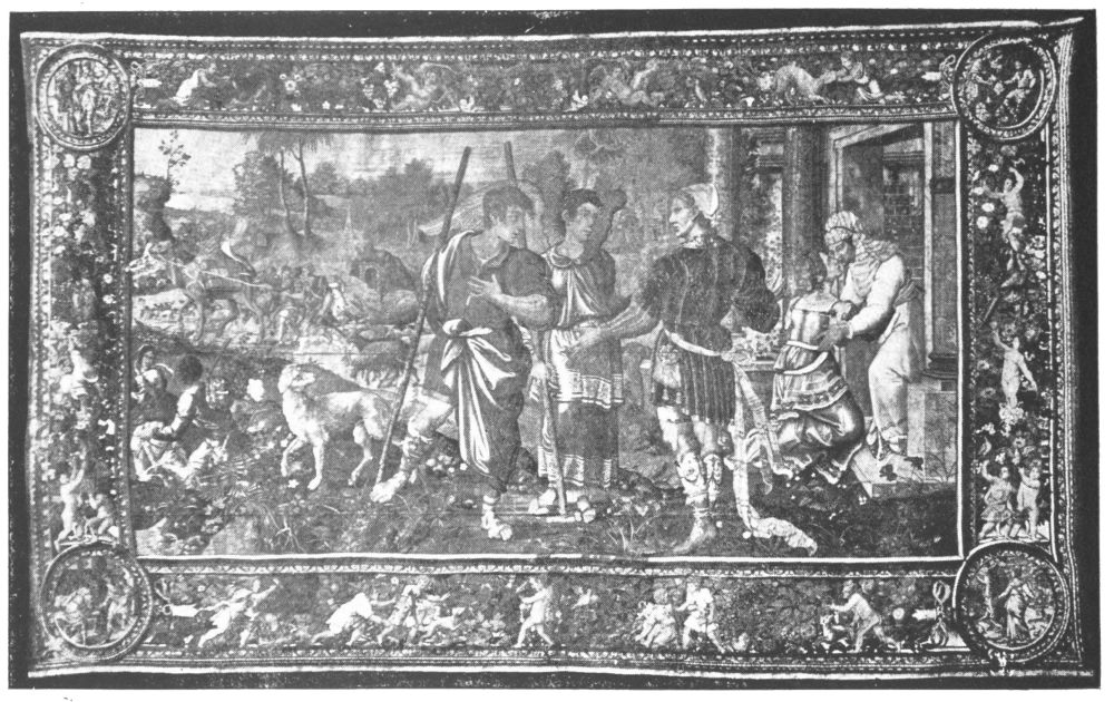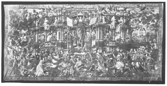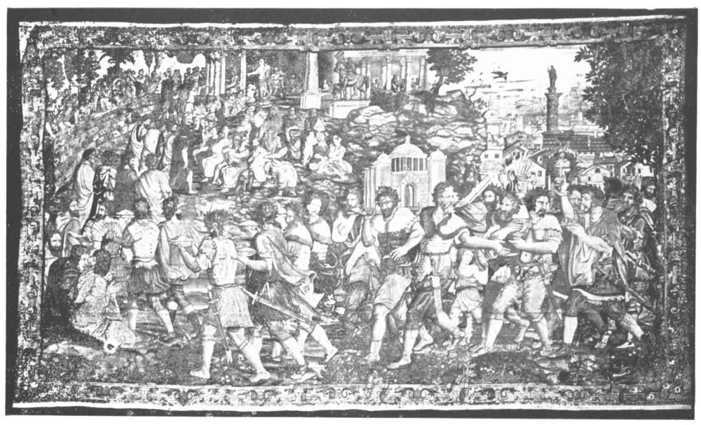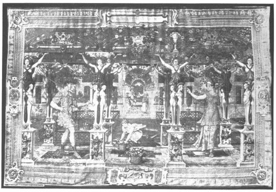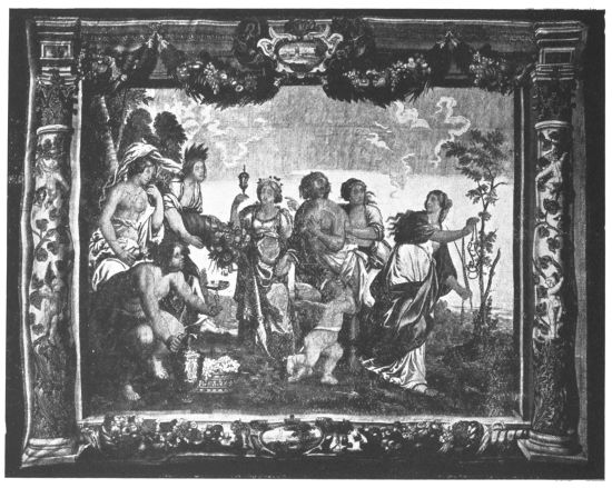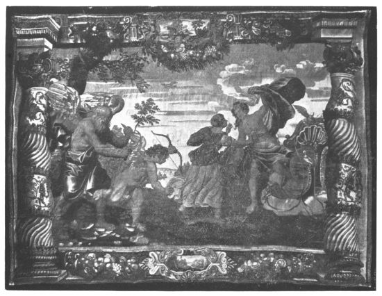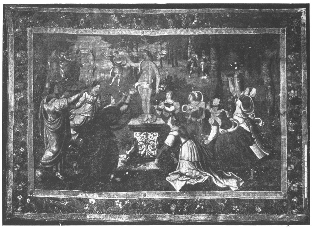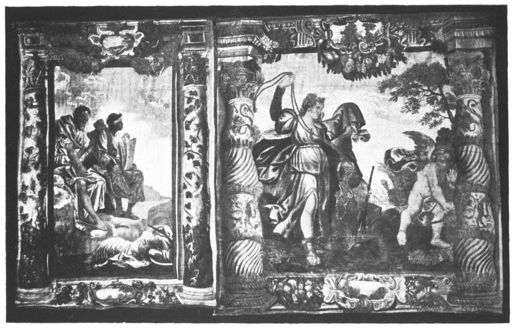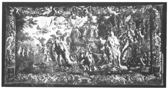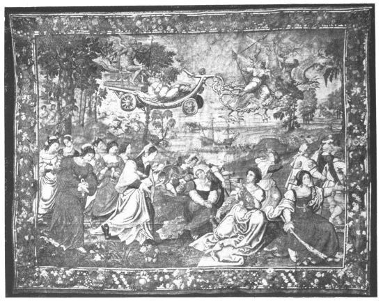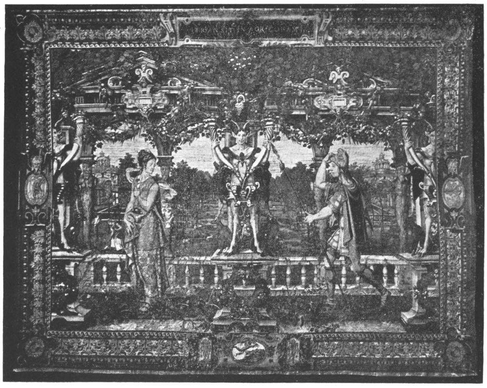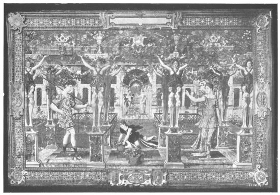 This boldly planned and finely executed series is composed of three tapestries. The name of the designer of the cartoons is unknown, but he{67} was evidently inspired by the Italian Renaissance. The figures are anatomically correct, and many of them were copied from well-known pictures.