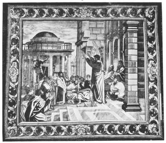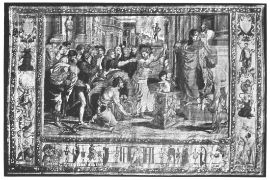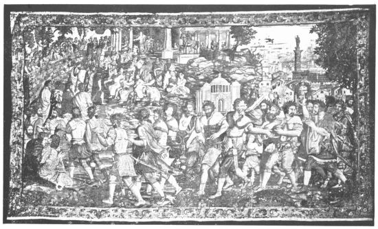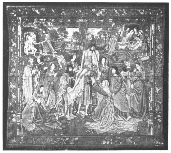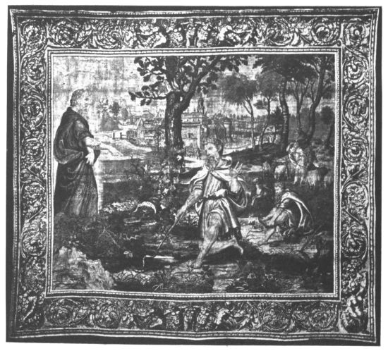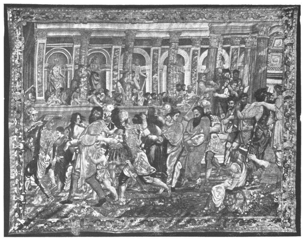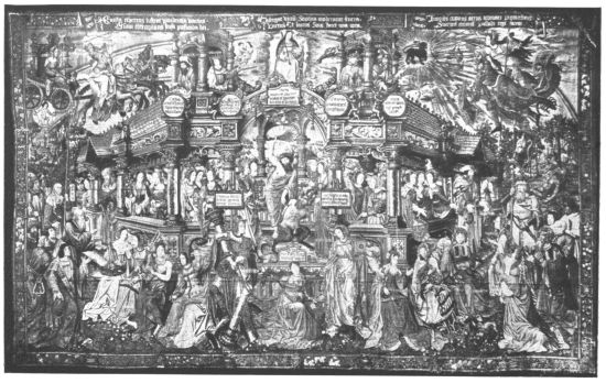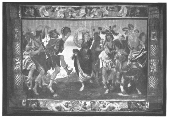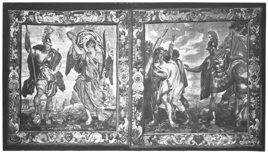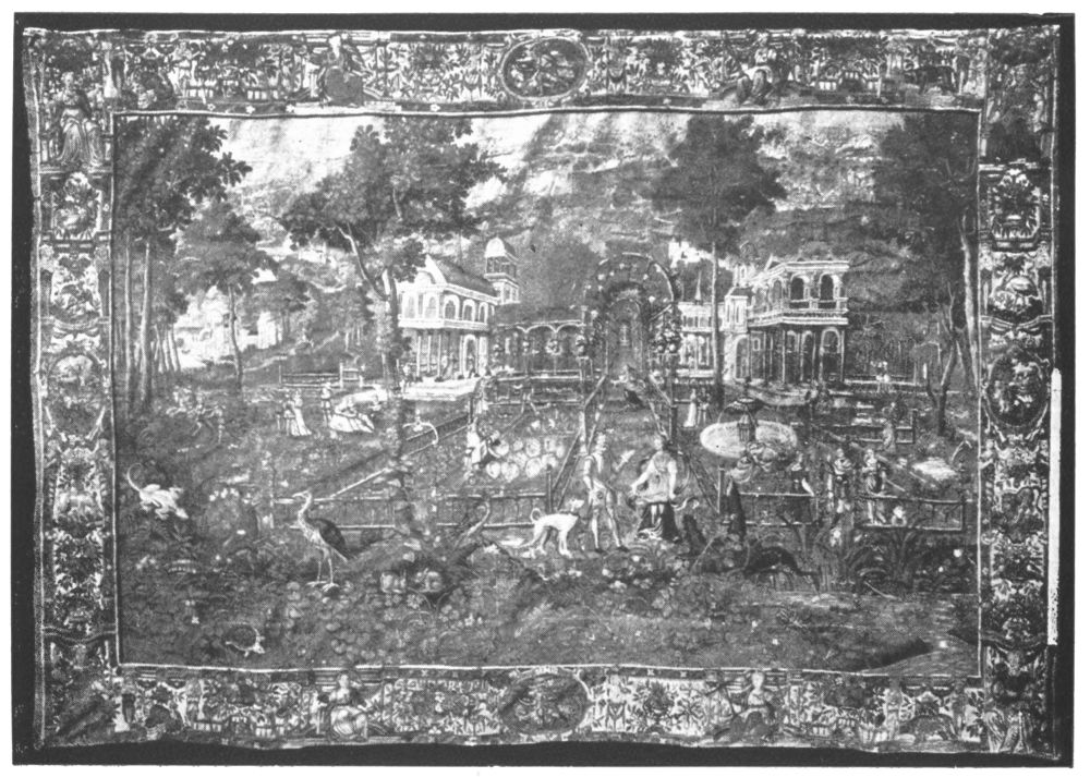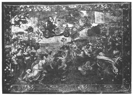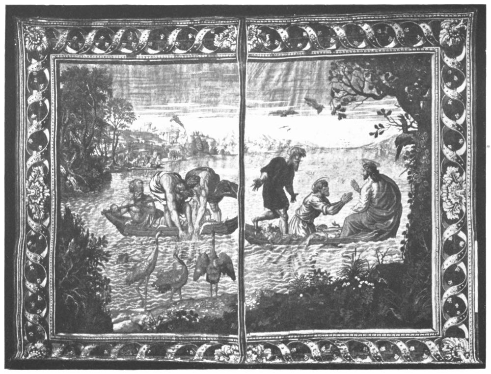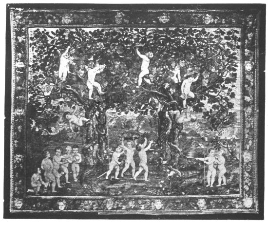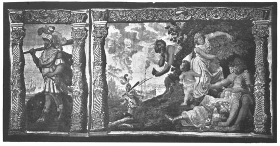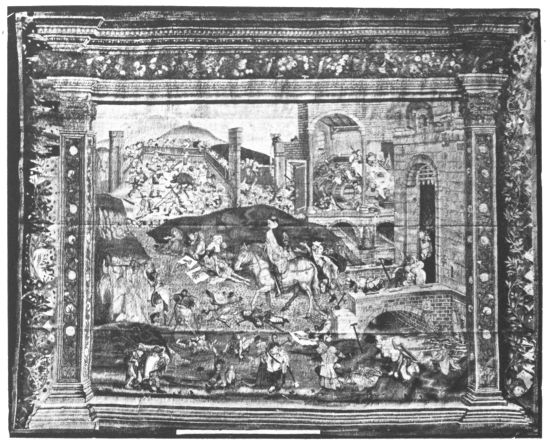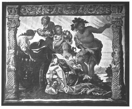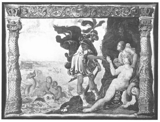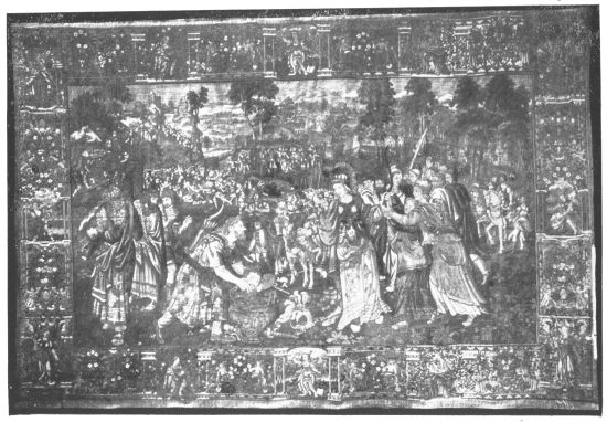 This boldly planned and finely executed series is composed of three tapestries. The name of the designer of the cartoons is unknown, but he{67} was evidently inspired by the Italian Renaissance. The figures are anatomically correct, and many of them were copied from well-known pictures.