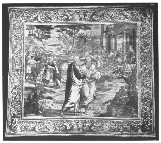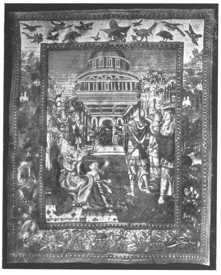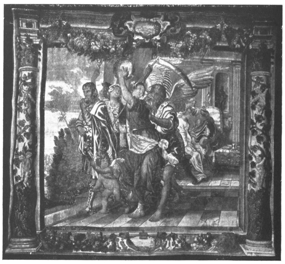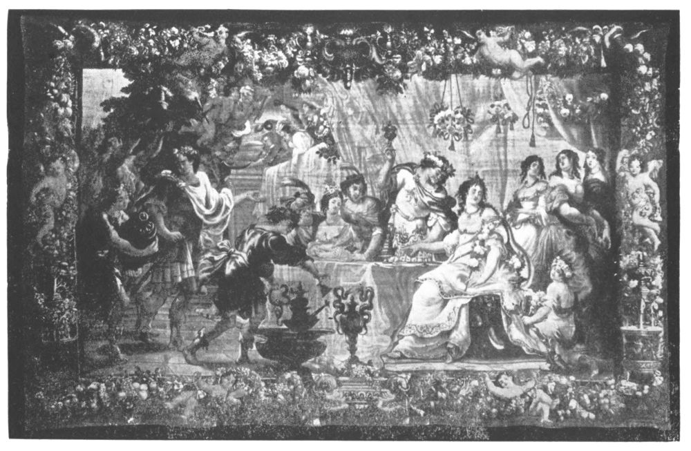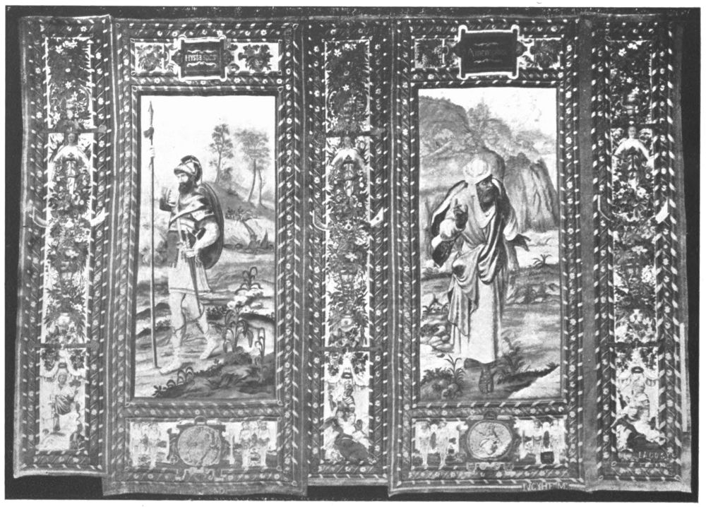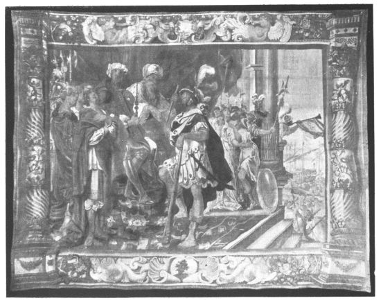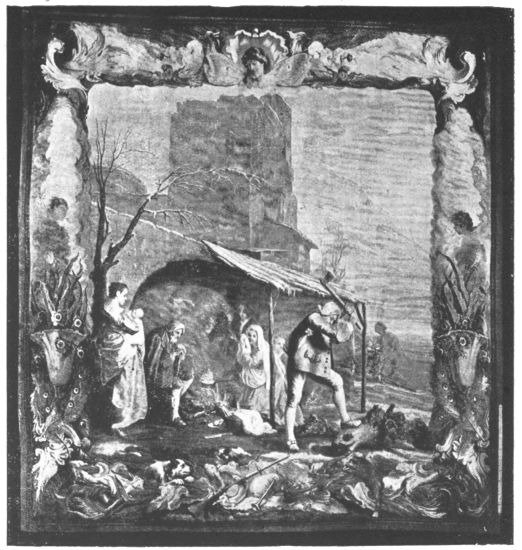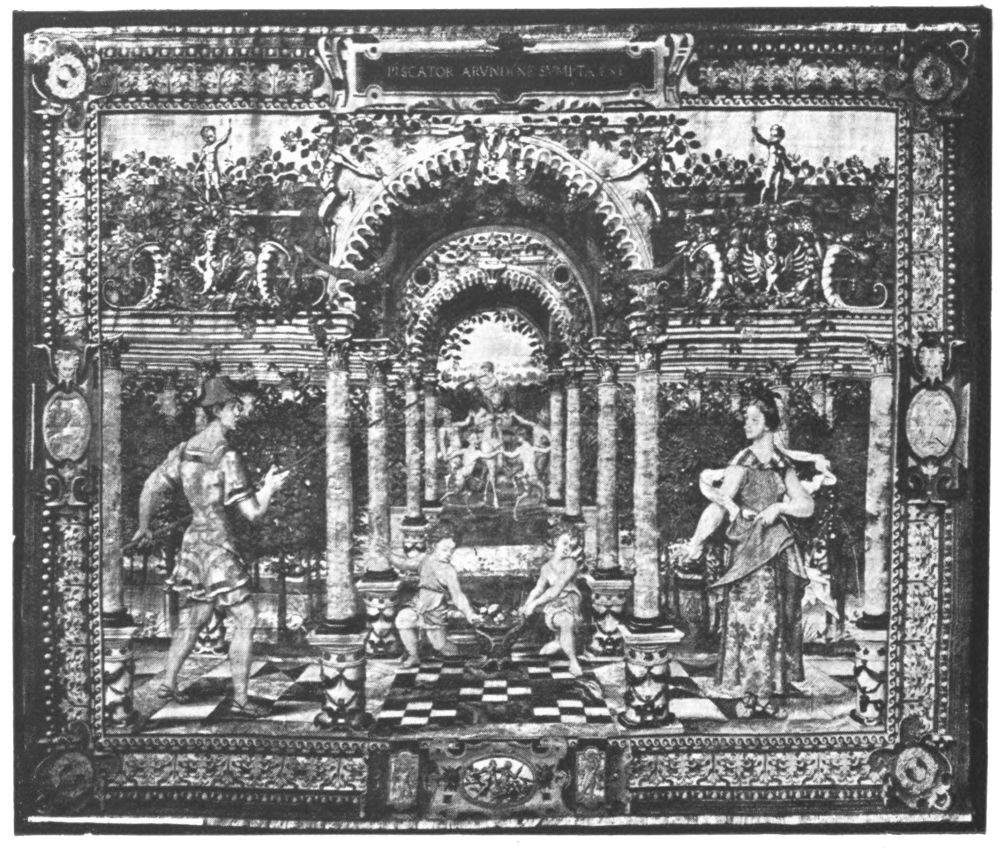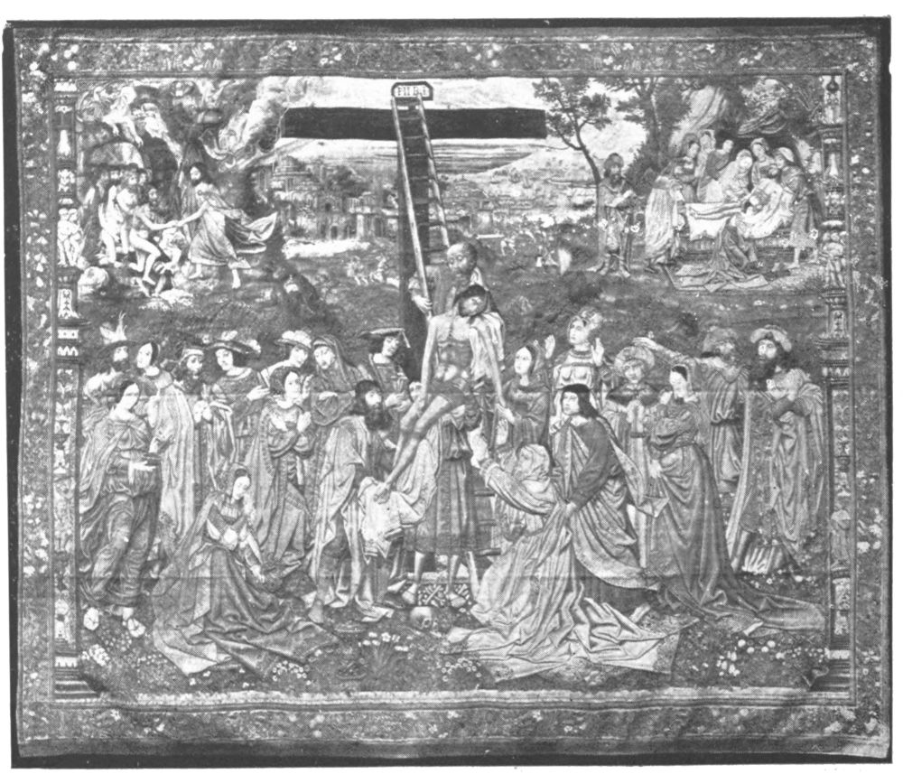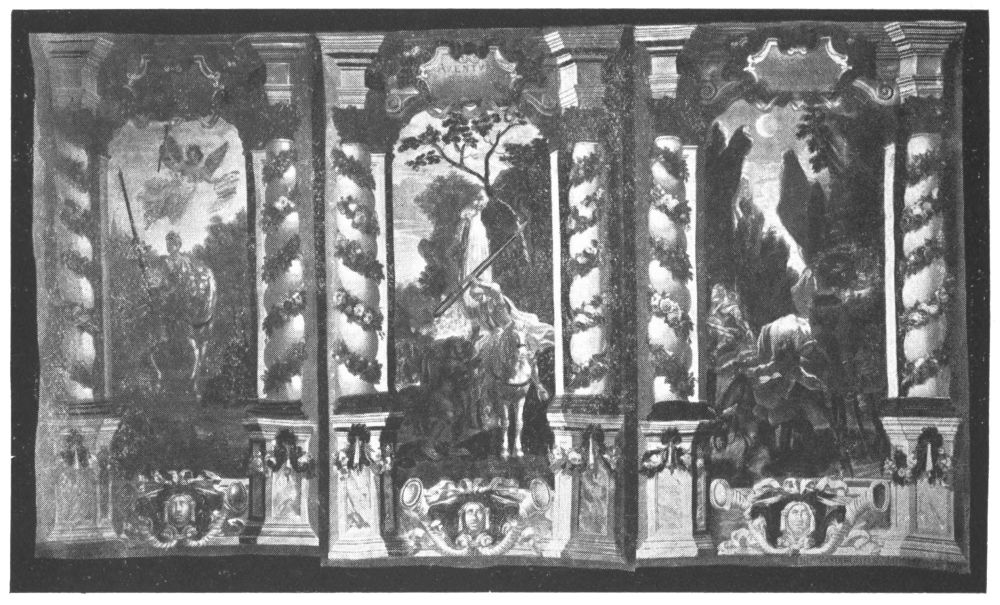 This boldly planned and finely executed series is composed of three tapestries. The name of the designer of the cartoons is unknown, but he{67} was evidently inspired by the Italian Renaissance. The figures are anatomically correct, and many of them were copied from well-known pictures.