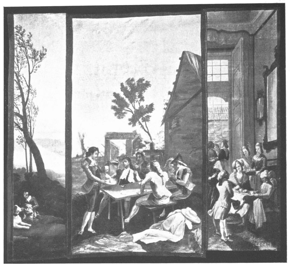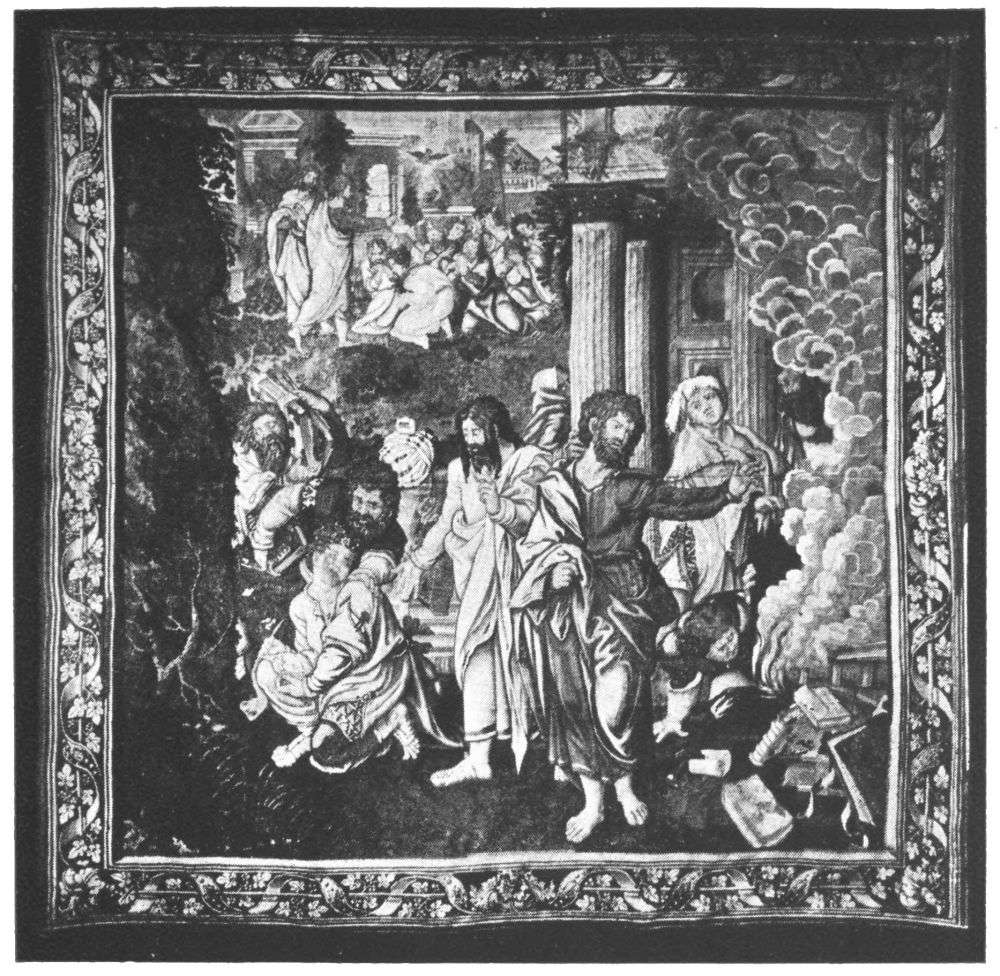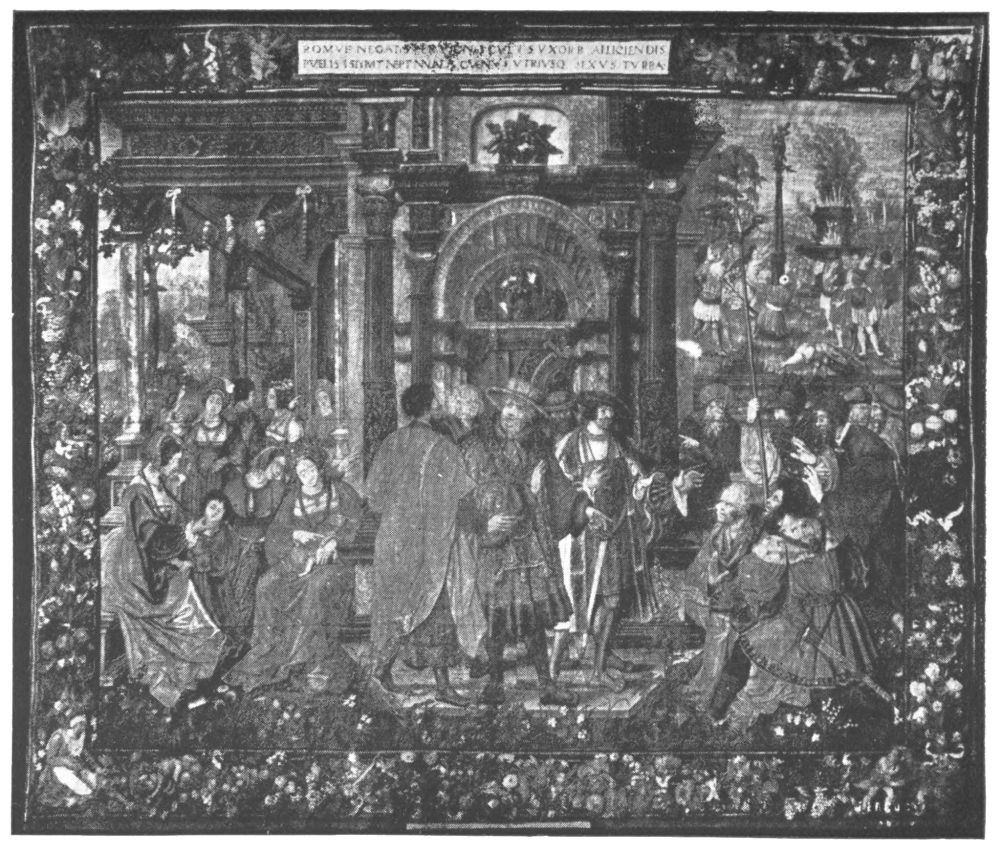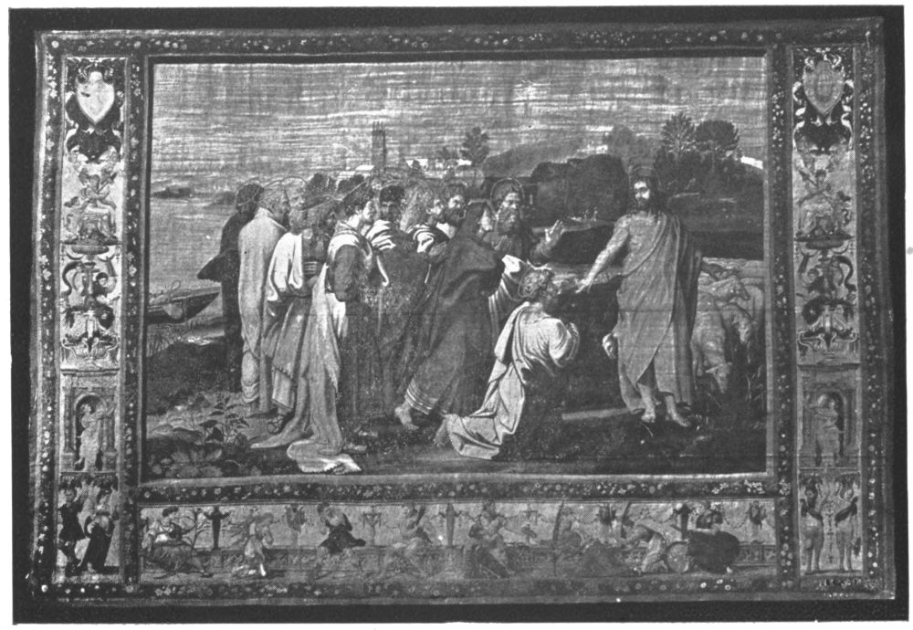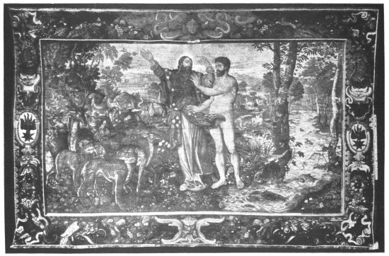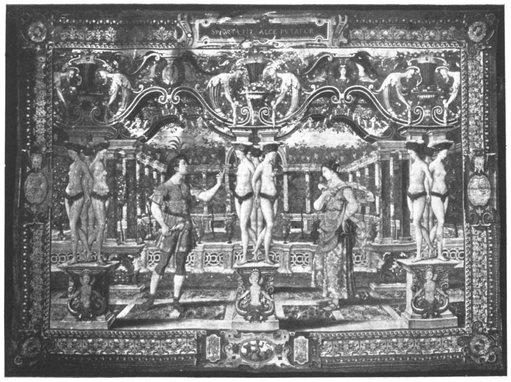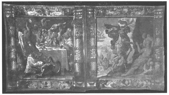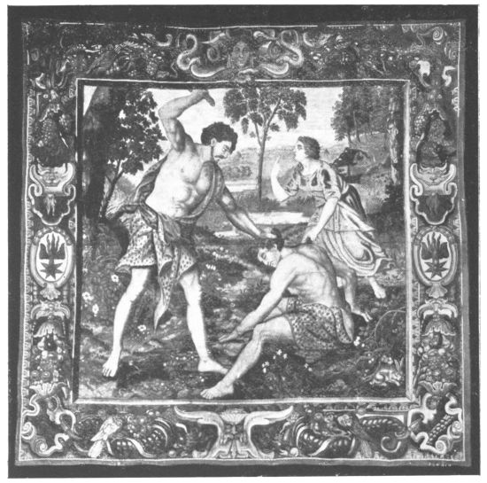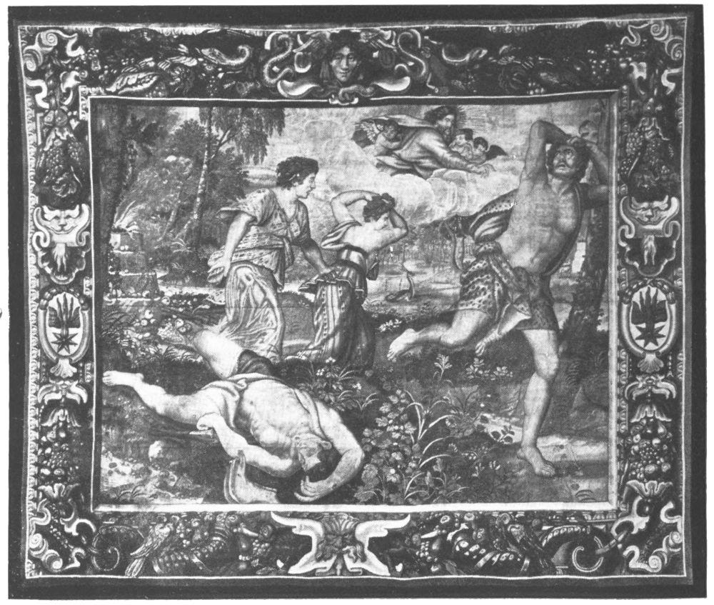 This boldly planned and finely executed series is composed of three tapestries. The name of the designer of the cartoons is unknown, but he{67} was evidently inspired by the Italian Renaissance. The figures are anatomically correct, and many of them were copied from well-known pictures.