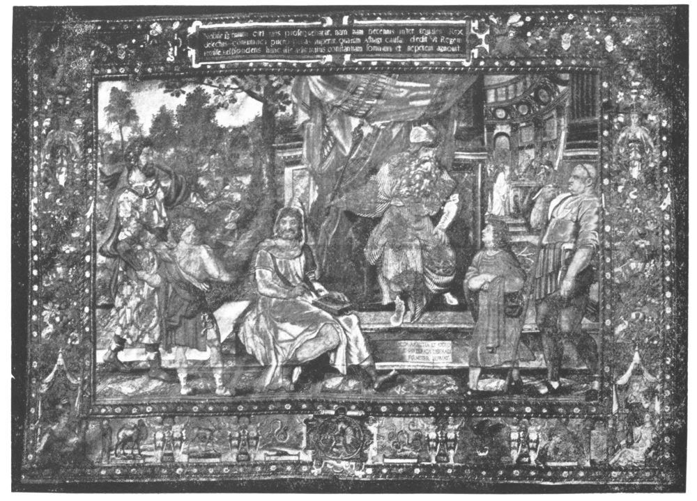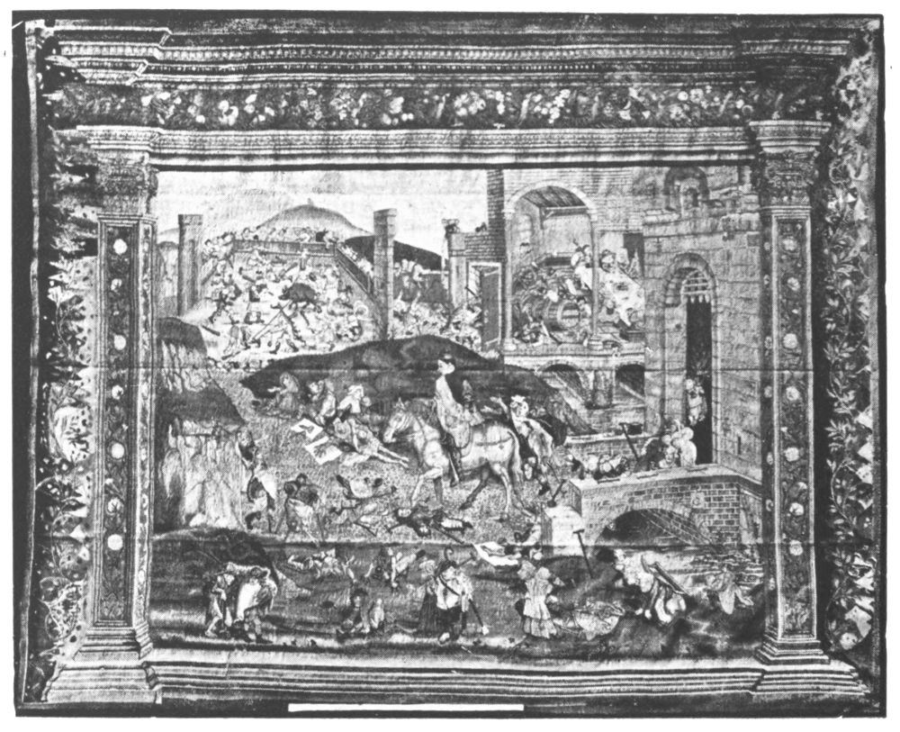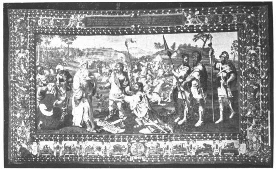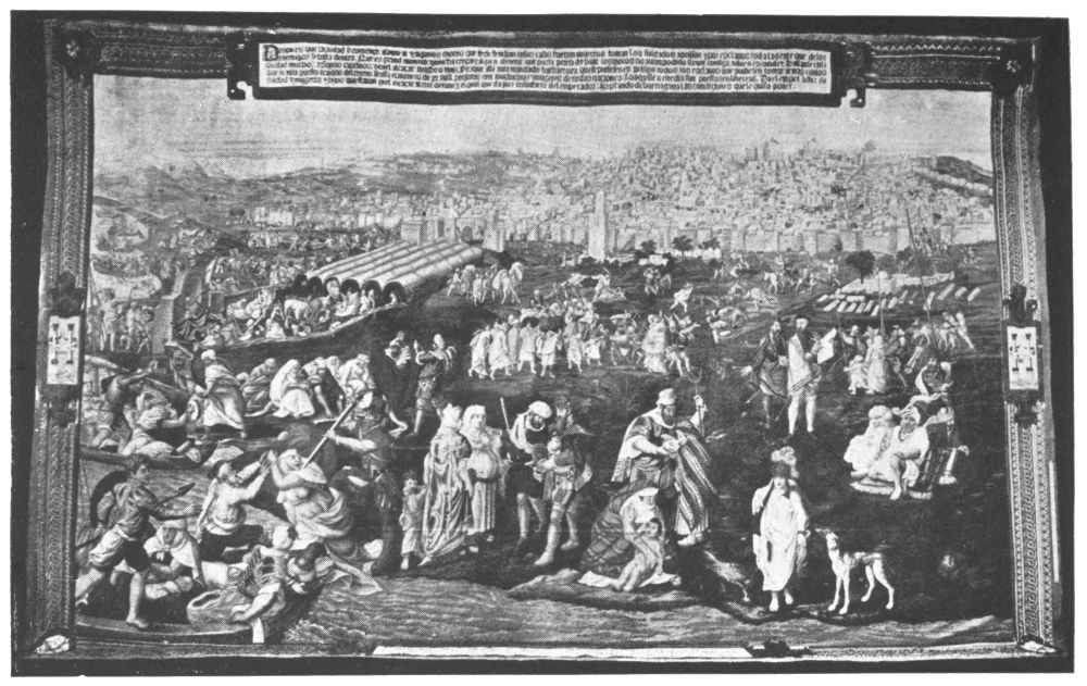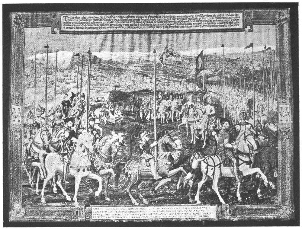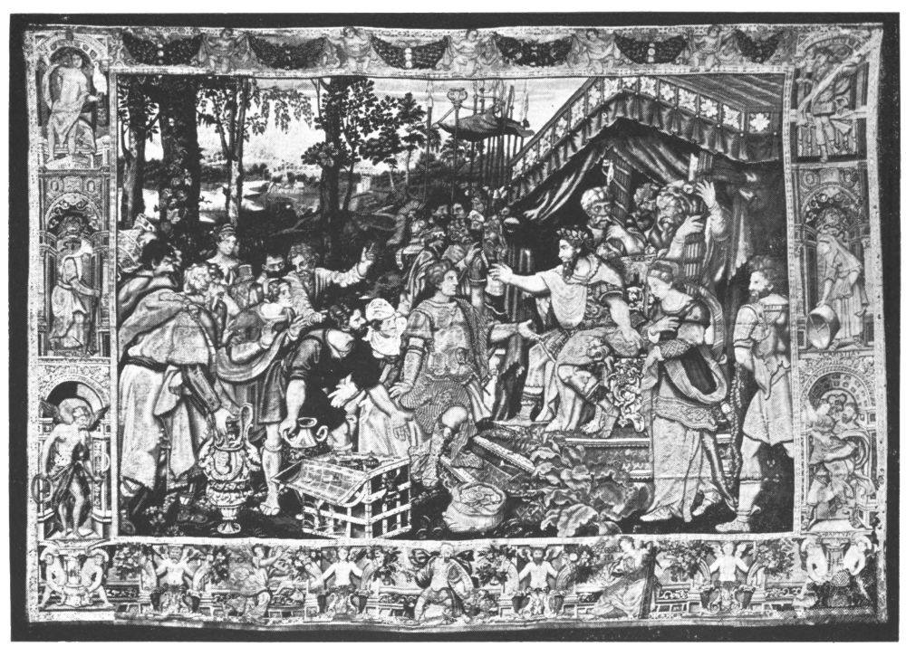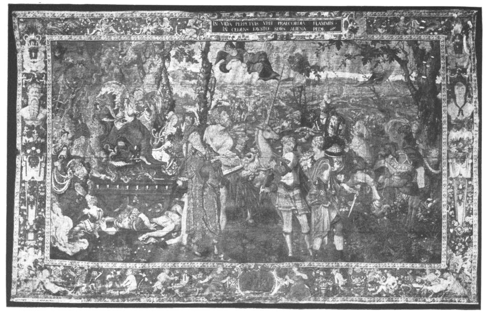 It has been asserted that the Spanish kings used their power in the Netherlands to extort from the weavers the finest products of their looms by blackmail, or even torture. There seems to be little foundation, if any, for this charge. With one exception, where the origin of the tapestries is known, they were acquired by inheritance or purchase, or were made, as in the case of the Conquest of Tunis, directly to the royal command.