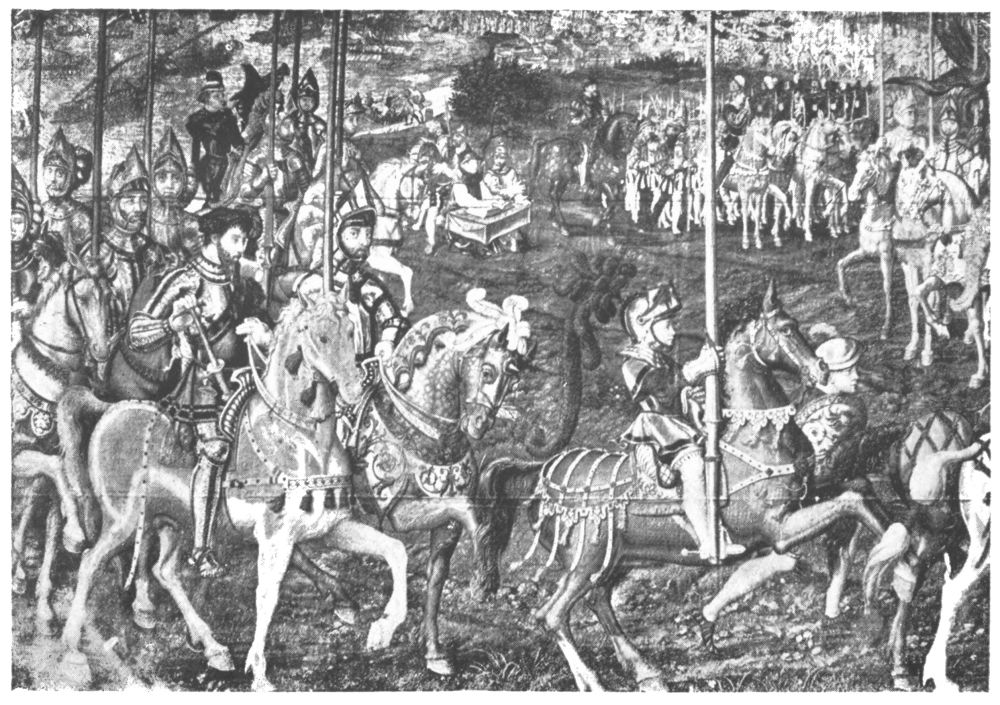 During the earlier decades of the fifteenth century the Dukes of Burgundy were employed in the consolidation of their power by the acquisition of province after province in the Low Countries. By 1443 these territories included, in addition to the French duchy of Burgundy, Flanders, Artois, Namur, Holland, Zeeland, Friesland, Brabant, Limbourg, and the duchy of Luxembourg, and Burgundy had to be reckoned with as a great European power. The Court of Philip the Good was, indeed, the most luxurious in Europe, enriched{15} with the finest paintings, the rarest books, and the most beautiful tapestries. Charles the Bold added Liége and Gelderland to the territories inherited from his father. On his death in 1477, Burgundy, Franche Comté, and Artois reverted to France. The rest of Charles’s dominions passed to his daughter Mary, who married Maximilian of Austria. On Maximilian’s election as Emperor, he made his son, Philip the Handsome, ruler of the Netherlands. The marriage of Philip with Joanna of Aragon secured to their son Charles the kingdoms of Aragon and Castile. On Charles’s election as Emperor in 1519, in succession to his grandfather Maximilian, he united the sovereignties of Spain and of the Netherlands.