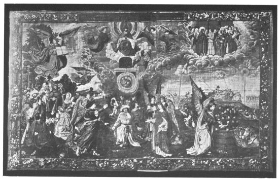 These tapestries belonged to Philip the Handsome and Juana the Mad. Transferred by Charles V to the monastery of Yuste, and again removed by Philip II to the monastery of the Escorial,{22} they were in constant use for the religious ceremonies attended by the Royal Household owing to their unusual beauty.