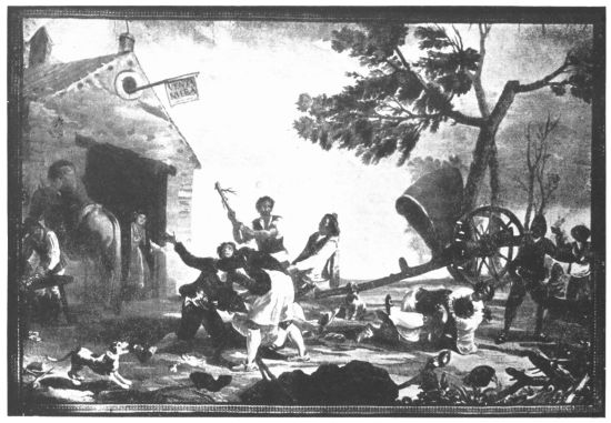 The French invasion caused the closing down of the workshops of Santa Barbara in 1808. Some years later they were reopened by the son of St. Ferdinand’s weaver, and once again beautiful fabrics were woven from the designs of Goya. The death of Ferdinand VII in 1833 gave a severe blow to the industry, but there are still looms in Santa Barbara where exquisite tapestries are executed under the direction of a descendant of Jacques Van der Goten.{14}