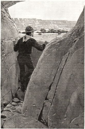 Whatever might lie in that direction, it could not be worse than the desert over which he had come, and it might be better. Of course that was not at all likely, for he did not believe there was anything but desert in that country. Still, it was worth investigating, and as Todd did not feel strong enough to stand, he crawled painfully to the barrier and up its easy slope.