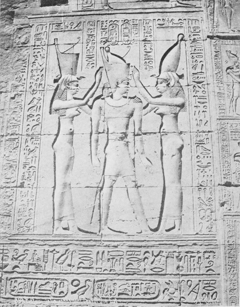These, and countless other particulars of daily life, are pictured with precise details, in coloured carvings and in paintings on the walls of tombs, so as to continue after death, for the benefit of the Ka or double, the conditions which the deceased had been accustomed to in life. This Ka was believed to be separate from the body, mind, or soul of the individual; an independent spiritual existence which, as long as it was present, ensured “protection, life,{33} continuance, purity, health, and joy.” Hence the care with which provision was made to induce it to remain with the individual when dead. For continuance of life after death was the cardinal principle of Egyptian religion. It was the spiritualised expression of the people’s intense conservatism; and the preservation of the body as a mummy and the taking of measures to ensure that the Ka would abide with it or, at least, visit it frequently, were the chief duties of the priesthood. The homes of the living, therefore, were considered of less importance than those of the dead; and, while few traces remain of dwellings or even of palaces, Egypt abounds with Tombs. These are the memorials of individuals, while the Temples embody the pride and glory of the national, collective life. Indeed, it would seem that during life the individual, except only the King, who represented the union of all, was regarded simply as a factor in the collective organisation of the community, the splendour and power of which was visualised in the Temples.