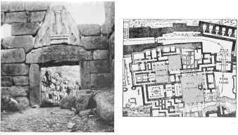 The most interesting examples of primitive structure are the so-called Cromlechs, of which that of Stonehenge, in England, is the best preserved. The unit of this and like remains is the “post and beam” formation, composed of a block of stone, supported on two uprights. In the case of Stonehenge this formation was repeated so as to form a continuous circle one hundred feet in diameter. Within this was a concentric circle, composed of smaller slabs, which enclosed a series of five separate post and beam structures on a horse-shoe plan. The latter is repeated by another series of slabs and in the centre stands the flat altar stone. Seventeen stones of the outer circle, varying from sixteen to eighteen feet in height, are still standing and in part connected by their beam slabs.