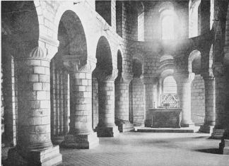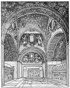 While, however, these primitive forms of roof construction prefigure the later development of the true arch, the student is warned in advance that they represent rather a feeling of the need of some such method of construction than any approach to a solution of the problem. For the latter, as we shall find later, consisted in discovering how to counteract the thrust of the arch; its tendency, that is, to press outward and collapse; whereas in the primitive construction this danger was evaded by embedding the roof in a mass of masonry or earth that made lateral strains impossible. The system, in fact, was more like that employed in shoring up the excavations in modern tunnelling and mining.