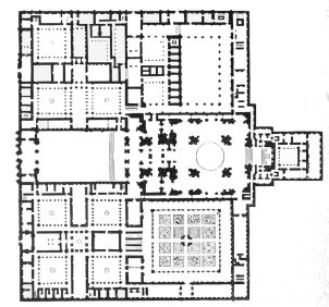 Our methods of study shall follow, as far as possible, the architect’s order of procedure. Given a site and the commission of erecting thereon a building for a specific purpose, the architect first concerns himself with the plans: the ground plan, and, if the building be of more than one story, the several floor plans. He lays out in the form of a diagram the lines that enclose the building and those that mark the divisions and subdivisions; indicating by breaks in the lines the openings of doors and windows and by isolated figures the position of columns or piers which he may be going to use for support of ceilings and roofs. The disposition of all these particulars will be determined not only by the purpose of the building, but also by the character of the site and by the{11} nature of the materials and method of construction that the architect purposes to employ.