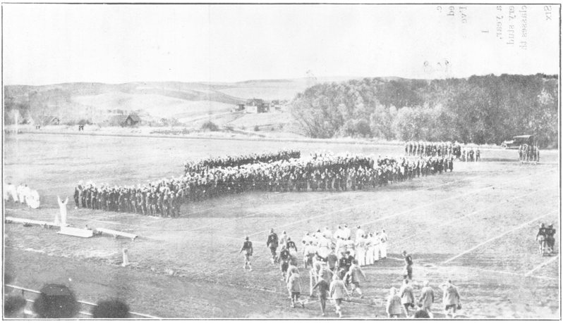 It ended all too soon—that wonderful week-end visit at the University of Idaho. Saturday night the Boy had the time of his life at the annual Military Ball, in the same old over-worked Gymnasium, transformed now into a bower of beauty and bright with colored lights and dainty evening dresses. Father looked on from the gallery and wished that Mother could be there to see. Next day came church services 23 in town, conversation and more music in the fraternity living room, and a Vesper Recital in the Auditorium at twilight. There was a mad rush for the railway station, a chorus of good-bye shouts, and the holiday was over.