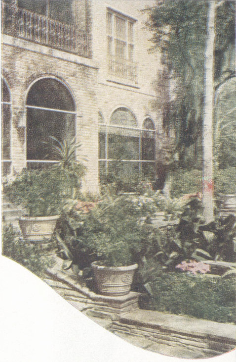 And here has been established a home, superbly built of rich old brick and traditional Southern iron grillwork. It is a perfect jewel in a perfect setting into which age-old romance and history have been woven. The lines of sturdy Norman grouping are softened and accented by the rich-railed balconies and porticos that bring to mind the quaint courts and cloisters of Southern Europe and the influence of Old France and Spain upon the Gulf Coast colonies.