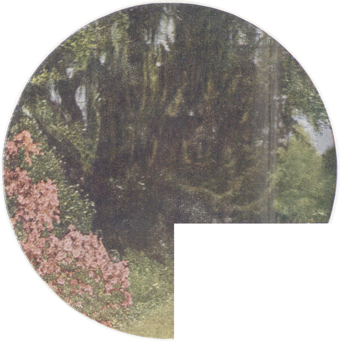 Ethereal Azaleas and Camellias are everywhere, and Gardenias and Sweet Olive fill the air with perfume that lingers along with memories of this famous garden spot. Bridal-like pathways are strewn with falling petals from the fragrant fragile flowers, and majestic arms of giant oaks—gray draped with mystic Spanish moss—form cavelike arches overhead. The roses have a corner of their own, where round and round in pattern of a giant Rotarian Wheel they flaunt their gorgeous colors in strong young buds. Old lavender Wisteria festoons its way along the redolent magnolia trees and brilliant blue Hydrangeas and Altheas and dogwood add a glory all their own to their respective seasons. Most every tree and shrub that likes the gentle clime along the Gulf has made its home within the hundred acres encompassed by the Bellingrath Gardens and found therein the care that lends an added beauty to their untamed growth. The clinging tendrils of a thousand vines have wound their way along the friendly branches of the trees, and woven round 3 their heads a mesh to keep the troubles of a distraught world from penetrating into this place of beauty, quietude and peace.