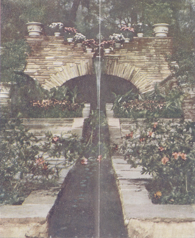 Enchanting flagstone walks wind their peaceful way through Bellingrath Gardens—a man-made rivulet trickles down a stairway of stone—the charming collection and amazing variety of the Camellia Japonica in this dream garden—these and many other scenes never fail to enchant the visitor.