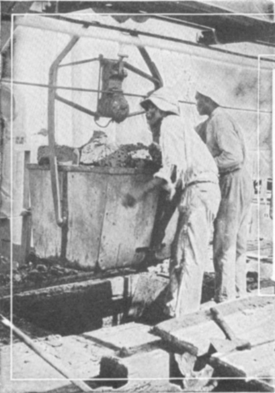 The railroad which carries the asphalt to the refinery is necessarily a light affair, for the reason that it is frequently moved from place to place, as mining work is shifted. It is remarkable, however, how the asphalt supports the ties and rails, especially when it is remembered that the loaded cars often passing in a continuous line over the rails, must weigh no less than 1000 pounds each. A solid lake may seem a misnomer, but no other phrase better describes the Trinidad deposit or the somewhat similar but much larger Bermudez asphalt lake in Venezuela.