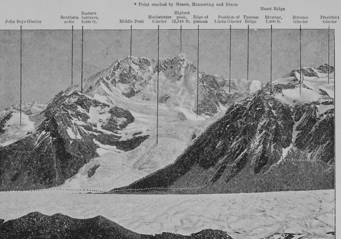 It will doubtless be said that the summit of Aorangi has not yet been attained: quite true. Like Mr. Green, the author and his friend were ‘wise in time.’ Yet it is only a quibble to dispute the ascent of the mountain, for being on the ice-cap of Aorangi is like being on the topmost rung of a ladder, and yet not upon the projections above that step.